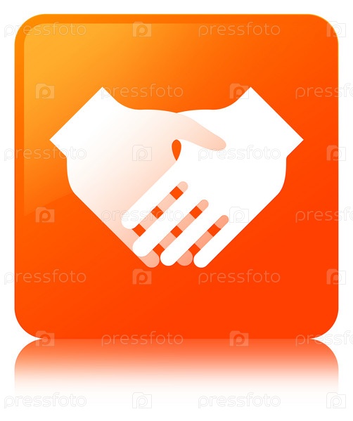Икона рукопожатия оранжевая квадратная кнопка