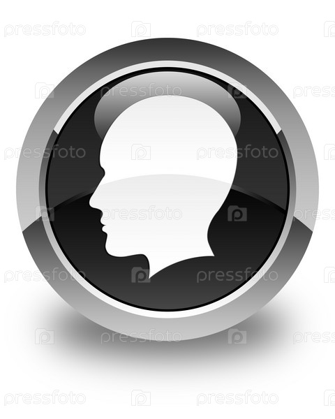Голова мужского лица икона глянцевая черная круглая кнопка