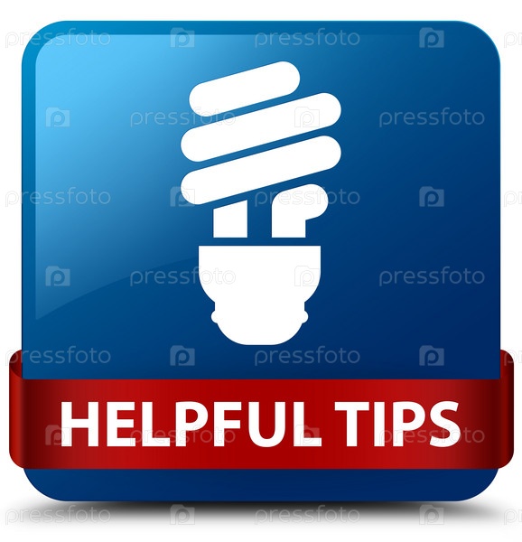 Полезные советы (икона лампочки) синяя квадратная кнопка красная лента посередине