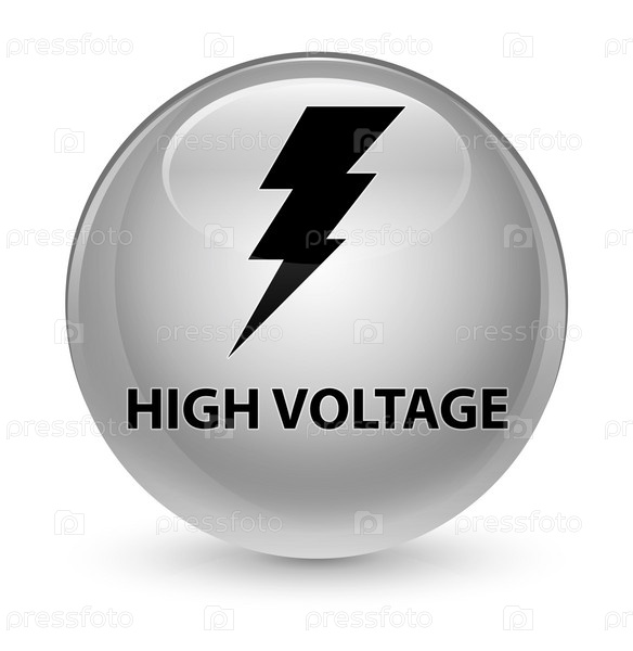 Высокое напряжение (икона электричества) стеклянная белая круглая кнопка