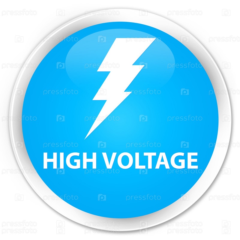 Высокое напряжение (икона электричества) премиум-циановый синий круглый кнопка