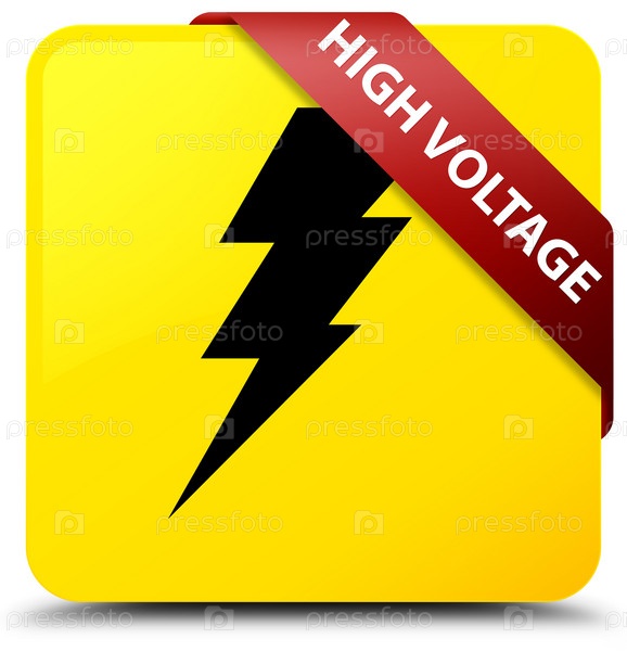 Высокое напряжение (икона электричества) желтая квадратная кнопка красная лента в углу