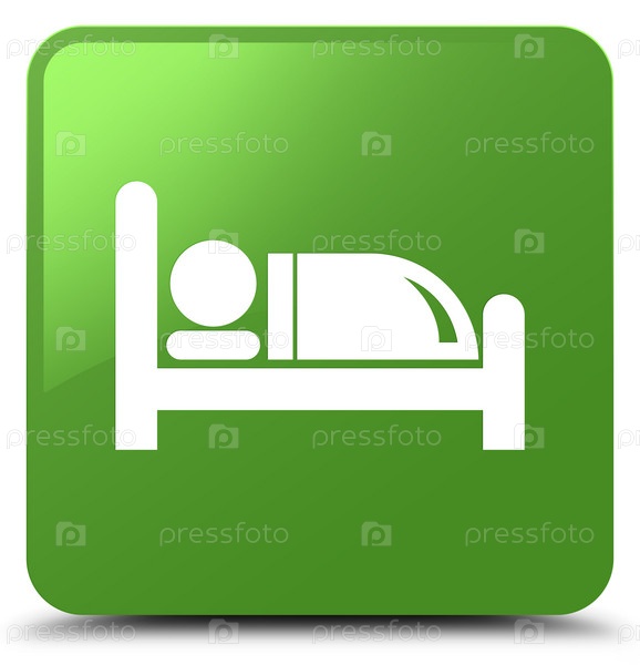 Икона гостиничного кровати мягкая зеленая квадратная кнопка