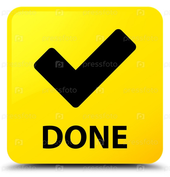 Сделано (икона проверки) жёлтая квадратная кнопка