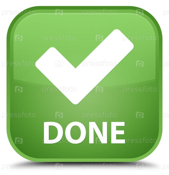 Сделано (икона проверки) специальная мягкая зеленая квадратная кнопка