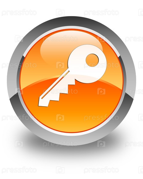 Икона ключа блестящая оранжевая круглая кнопка