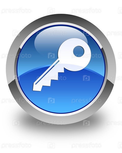 Икона ключа блестящая голубая круглая кнопка