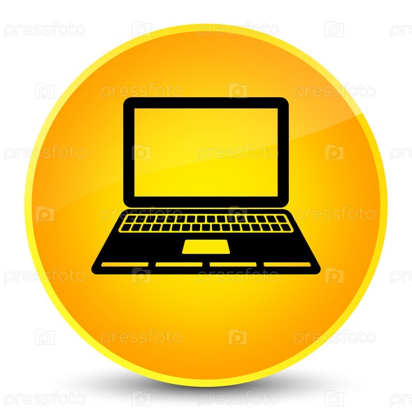 Икона ноутбука с элегантной желтой круглой кнопкой