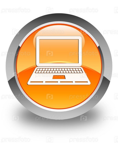 Икона ноутбука блестящая оранжевая круглая кнопка