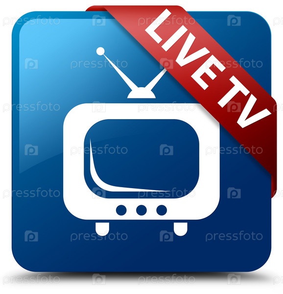 Живое телевидение синяя квадратная кнопка красная лента в углу