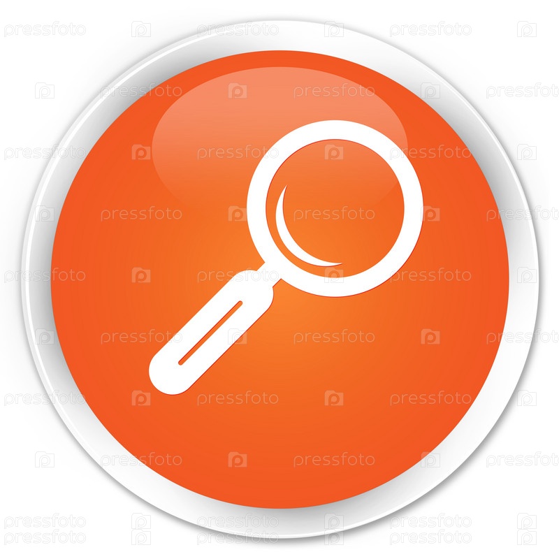 Икона увеличительного стекла премиум оранжевая круглая кнопка