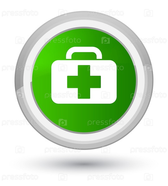 Икона медицинского пакета - первоклассная зеленая круглая кнопка