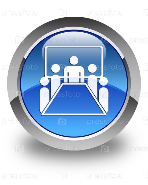 Икона конференц-зала блестящая голубая круглая кнопка