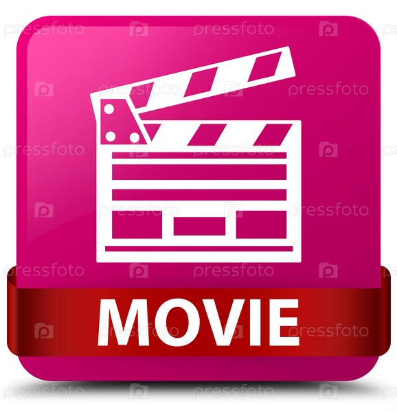 Movie (cinema clip icon) розовая квадратная кнопка красная лента посередине