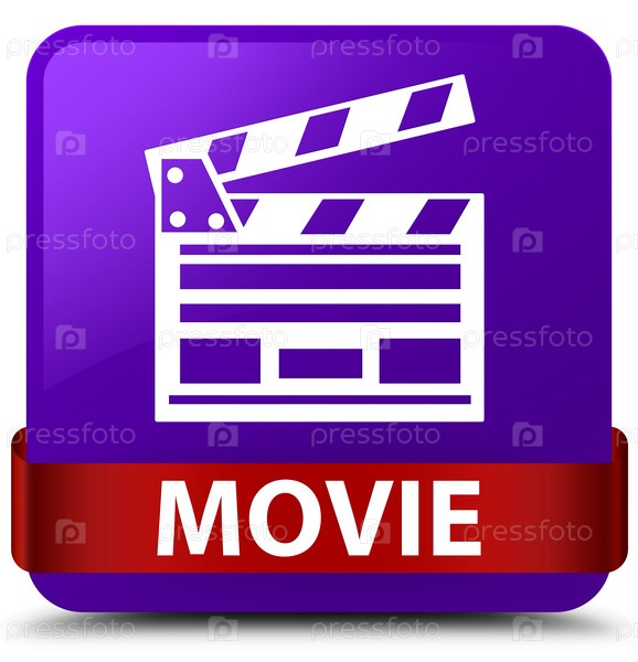 Movie (cinema clip icon) фиолетовая квадратная кнопка красная лента посередине