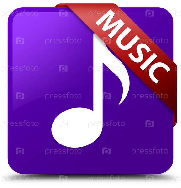 Музыка фиолетовая квадратная кнопка красная лента в углу