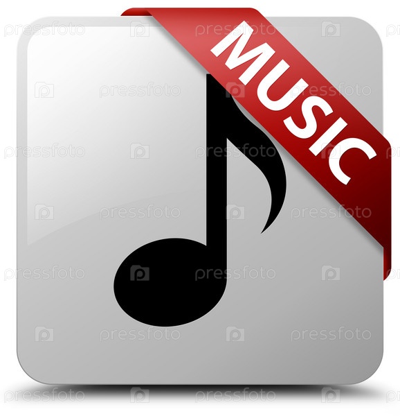Музыка белый квадратный кнопка красная лента в углу