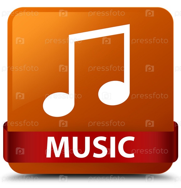 Музыка (икона мелодии) коричневая квадратная кнопка красная лента посередине