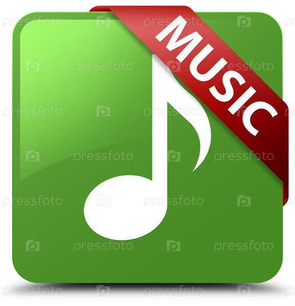 Музыка мягкая зеленая квадратная кнопка красная лента в углу