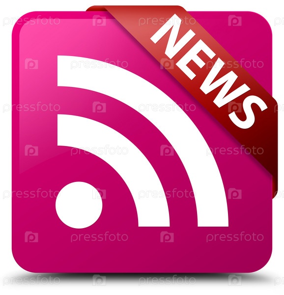 (икона RSS) розовая квадратная кнопка красная лента в углу Новости