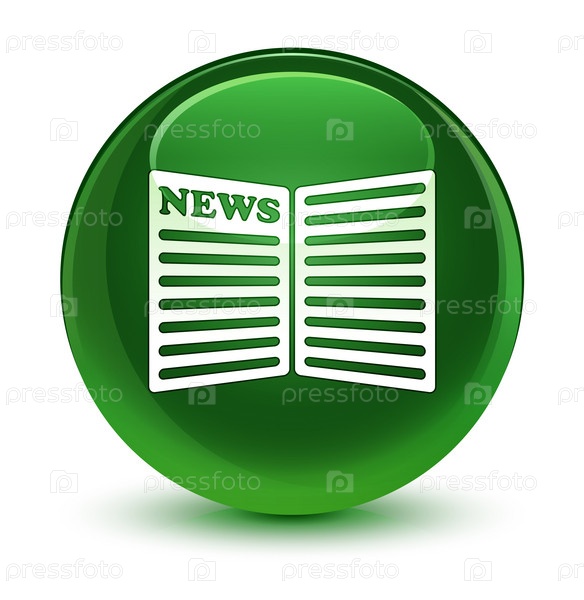 Икона газеты стеклянная мягкая зеленая круглая кнопка