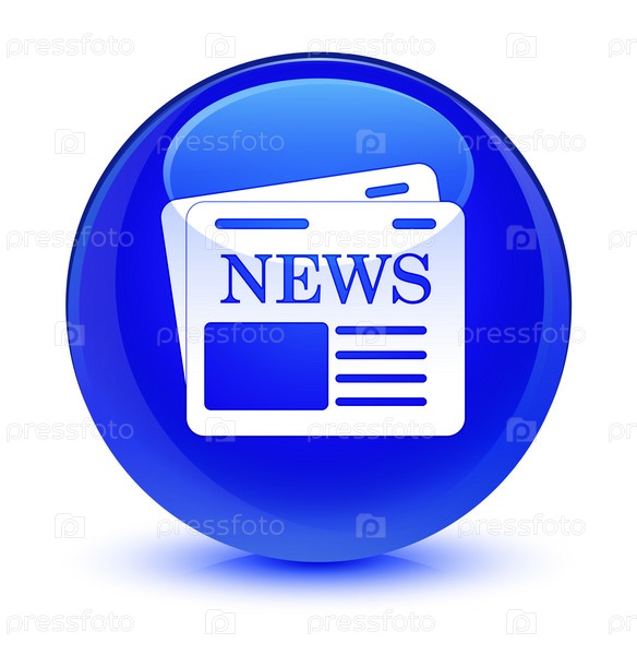 Икона газеты стеклянная голубая круглая кнопка