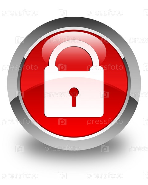 Икона замка блестящего красного круглого кнопки