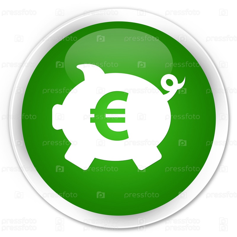 Пигги-банк евро знак икона премиум зеленый круглый кнопка
