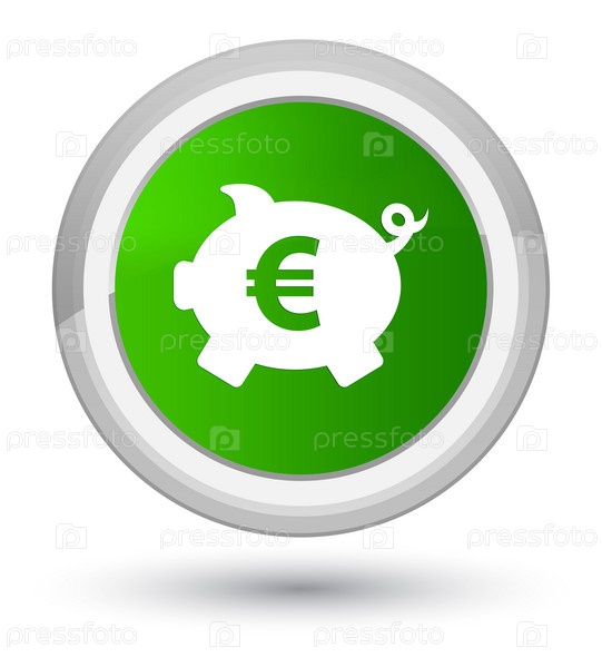 Пигги-банк знак евро икона первоклассный зеленый круглый кнопка