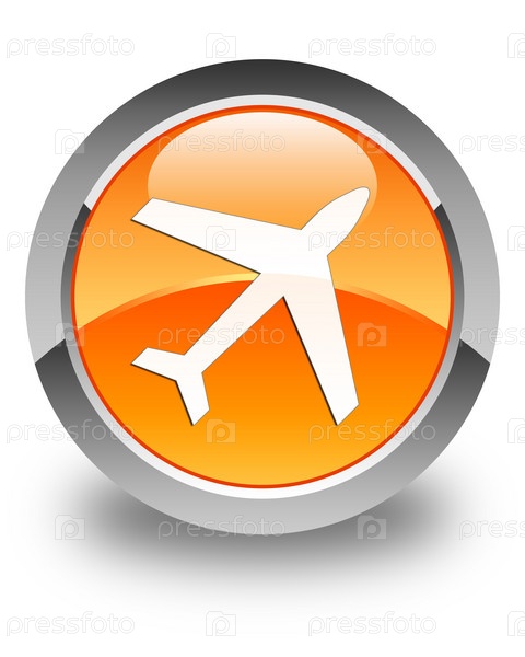 Икона самолета блестящая оранжевая круглая кнопка