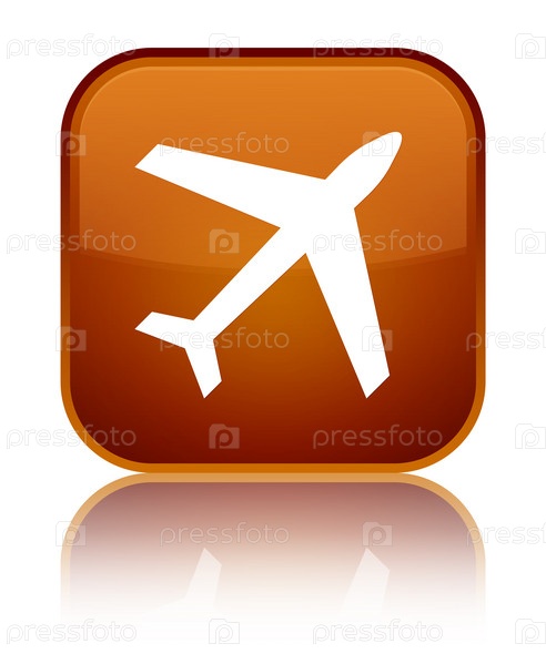Икона самолета специальная коричневая квадратная кнопка Самолет
