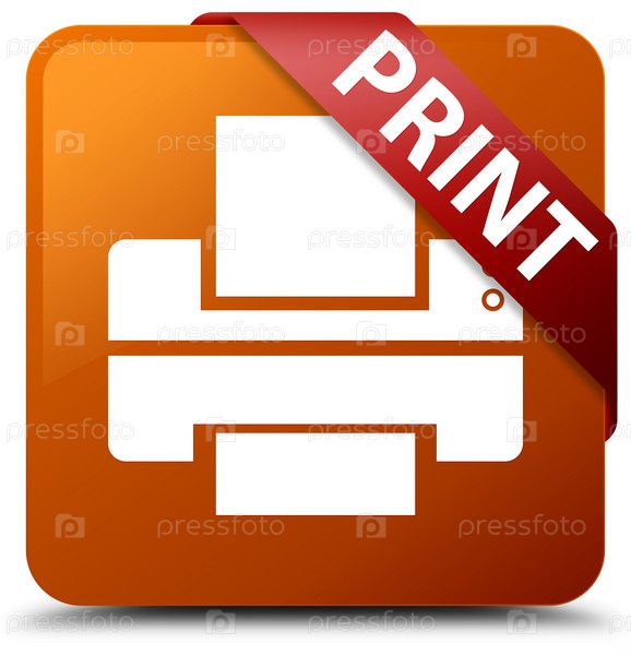 Печать (икона принтера) коричневая квадратная кнопка красная лента в углу