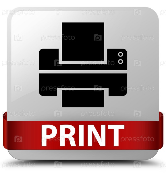 Печать (икона принтера) белая квадратная кнопка красная лента посередине