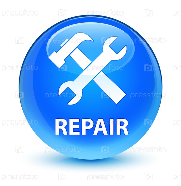 Ремонт (икона инструментов) стеклянный синий синеватый круглый кнопка