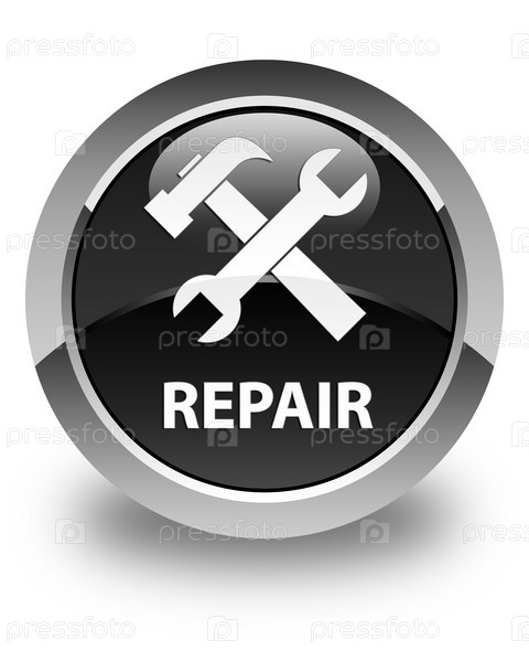 Ремонт (икона инструментов) глянцевая черная круглая кнопка