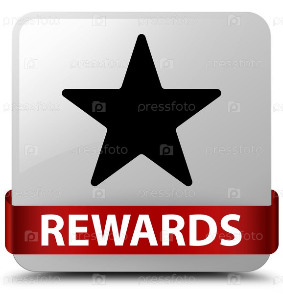 Вознаграждения (икона звезды) белая квадратная кнопка красная лента посередине