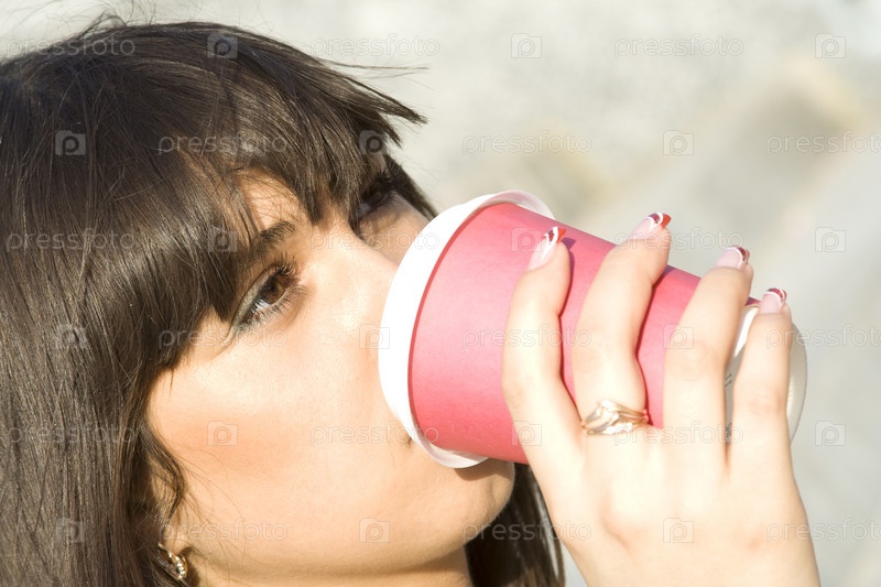 Молодая девушка пьет из стакана