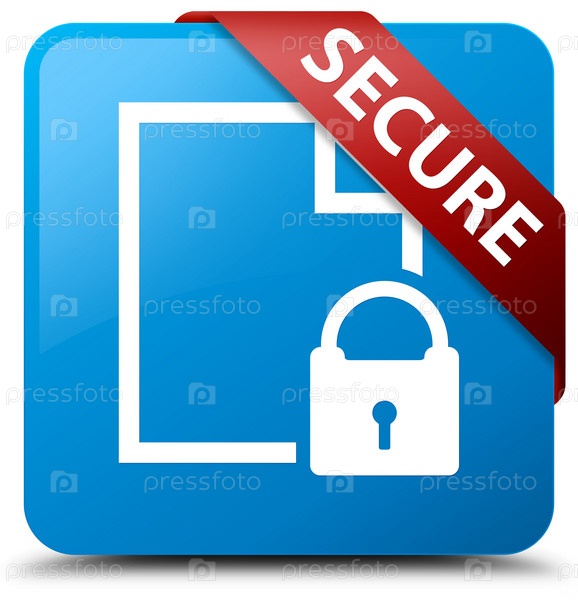 Безопасно (икона замка на странице документа) синий синий квадратный кнопка красная лента в углу