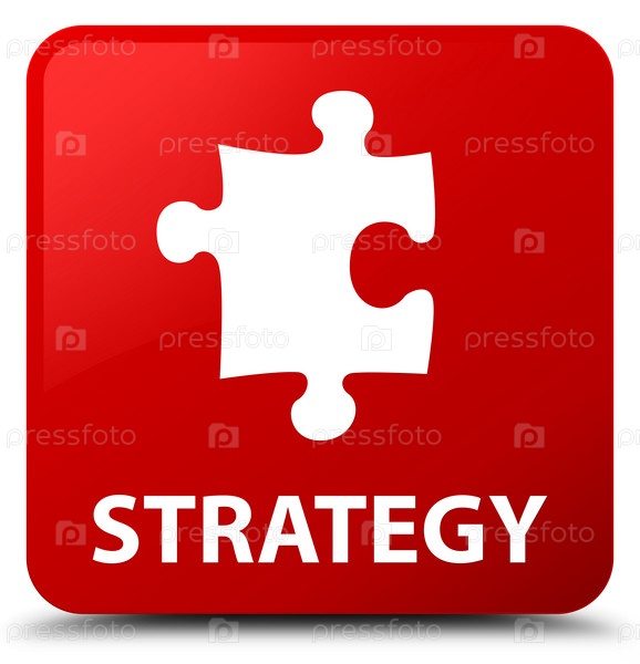 Стратегия (икона головоломки) красная квадратная кнопка