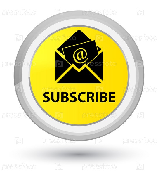 Подписаться (икона электронной почты для рассылки новостей) Prime yellow round button