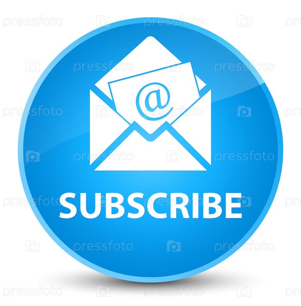 Подпишитесь (икона электронной почты для рассылки новостей) на элегантную круглую кнопку синего цвета
