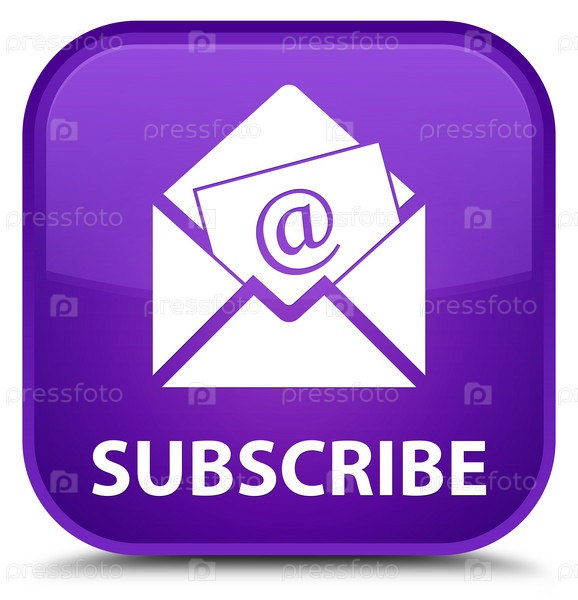 Подписаться (икона электронной почты для рассылки новостей) специальная фиолетовая квадратная кнопка