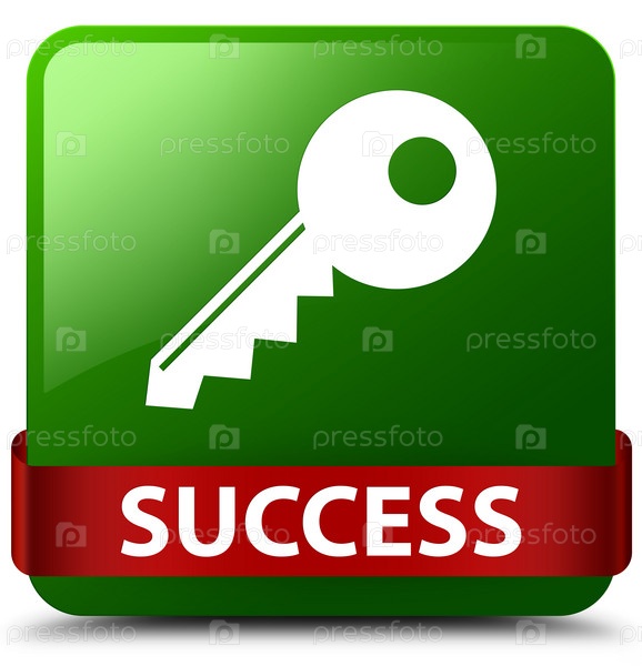 Успех (икона ключа) зеленая квадратная кнопка красная лента посередине