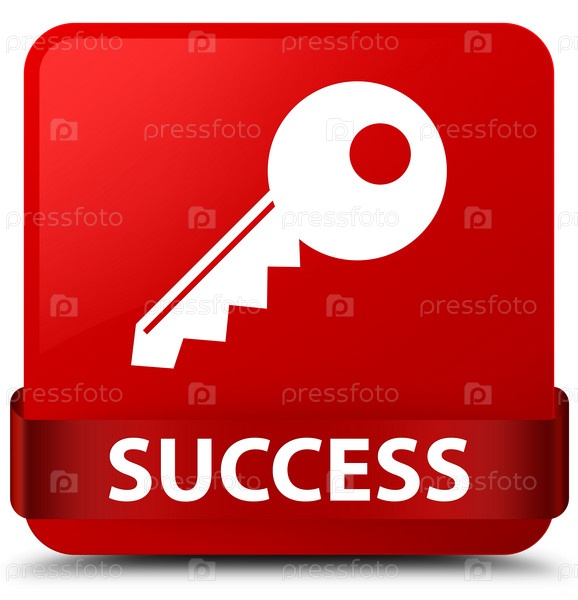 Успех (икона ключа) красная квадратная кнопка Красная лента посередине