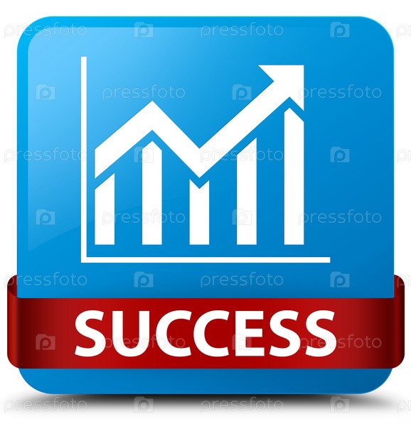 Успех (икона статистики) синий синий квадратный кнопка красная лента посередине