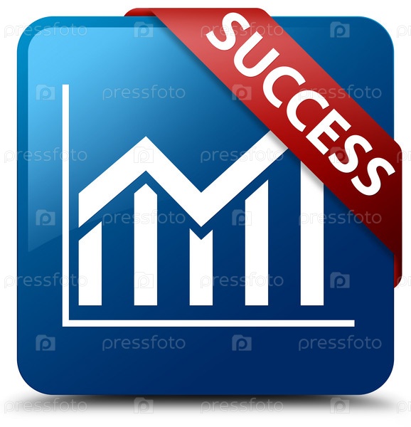 Успех (икона статистики) синяя квадратная кнопка красная лента в углу