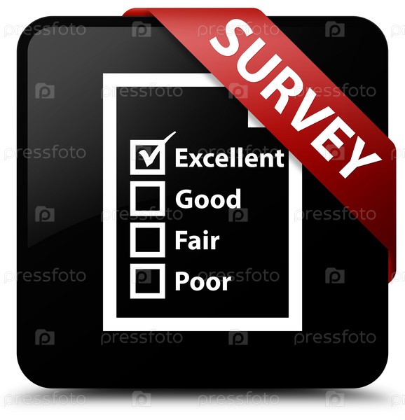 Опрос (икона анкеты) черная квадратная кнопка красная лента в углу