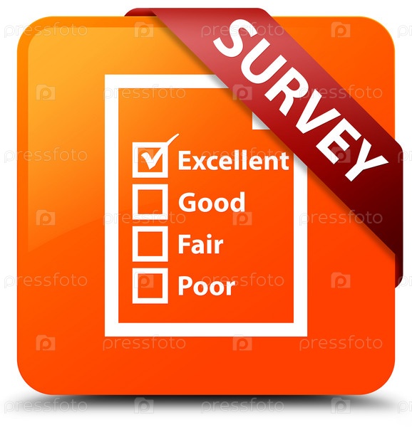 Опрос (икона анкеты) оранжевая квадратная кнопка красная лента в углу