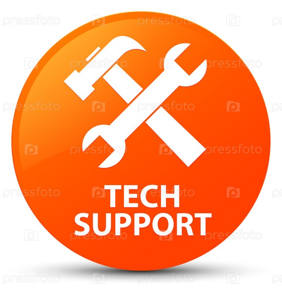Техническая поддержка (икона инструментов) оранжевая круглая кнопка