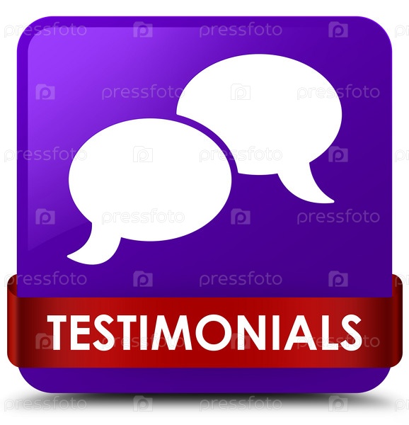 Отзывы (икона чата) фиолетовая квадратная кнопка красная ленточка посередине
